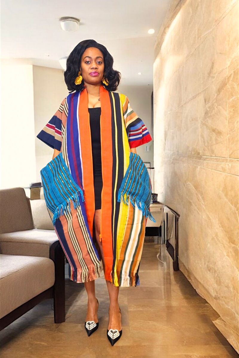 Finished with signature fringe detailing from the hem to the standout teal fringe pocket, the Adéọba Regal Jacket Dress moves beautifully with every step. Exceptionally versatile, it can be worn open as a kimono-style jacket layered over a fitted dress, or zipped/closed and styled as a boubou dress for a polished, runway-ready look.
